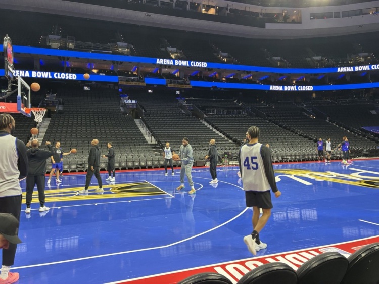 76人队NBA杯主场地板颜值如何?球员们已经在NBA杯的球场练上了!